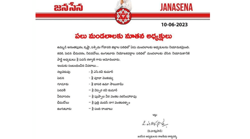 ఉమ్మడి అనంతపురం, కృష్ణా, పశ్చిమ గోదావరి జిల్లాల పరిది లోని ఏడు మండలాలకు నూతన అధ్యక్షులు ను నియామకమైంది. కదిరి, పెడన, నీడదవోలు, భీమవరం, ఉంగుటూరు నియోజకవర్గాల