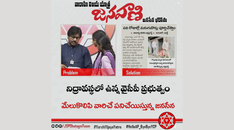 Read Moreవైసీపీ రాక్షస పాలనతో విసిగిపోయిన రాష్ట్ర ప్రజలంతా “వారాహి విజయ యాత్ర”తో పవన్ కళ్యాణ్ గారి వెంట నడుస్తూ, @ysjagan ప్రభుత్వాన్ని గద్దె దించేందుకు #HelloAP_ByeByeYCP అంటూ