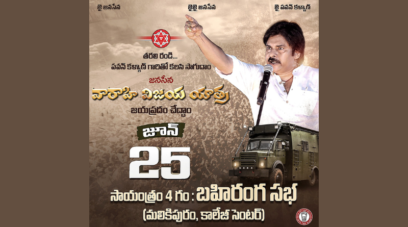 Read Moreజై జనసేన జై జై జనసేన తరలి రండి… శ్రీ పవన్ కళ్యాణ్ గారితో కలసి సాగుదాం వారాహి విజయ యాత్ర జయప్రదం చేద్దాం జూన్ 25